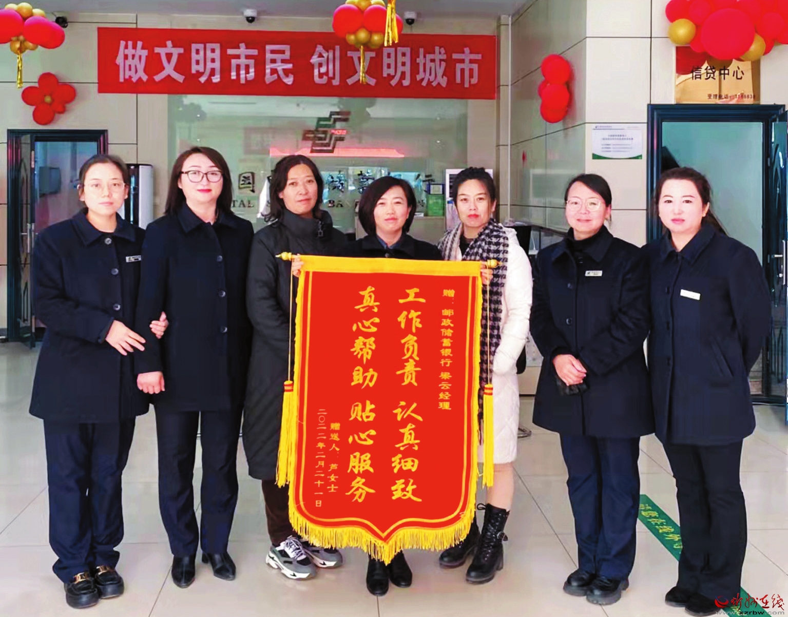 2月21日,市民蘆女士將一面印有“工作負責 認真細致 真心幫助 貼心服務”的錦旗送到郵儲銀行忻州市分行人民公園支行,由衷感謝理財經理梁云認真負責、高效便民的優(yōu)質服務。 (王 杰 攝)