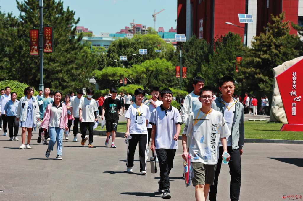 圖為6月20日,參加完中考第一場(chǎng)考試的考生走出忻州一中考點(diǎn)。 記者 張存良 攝
