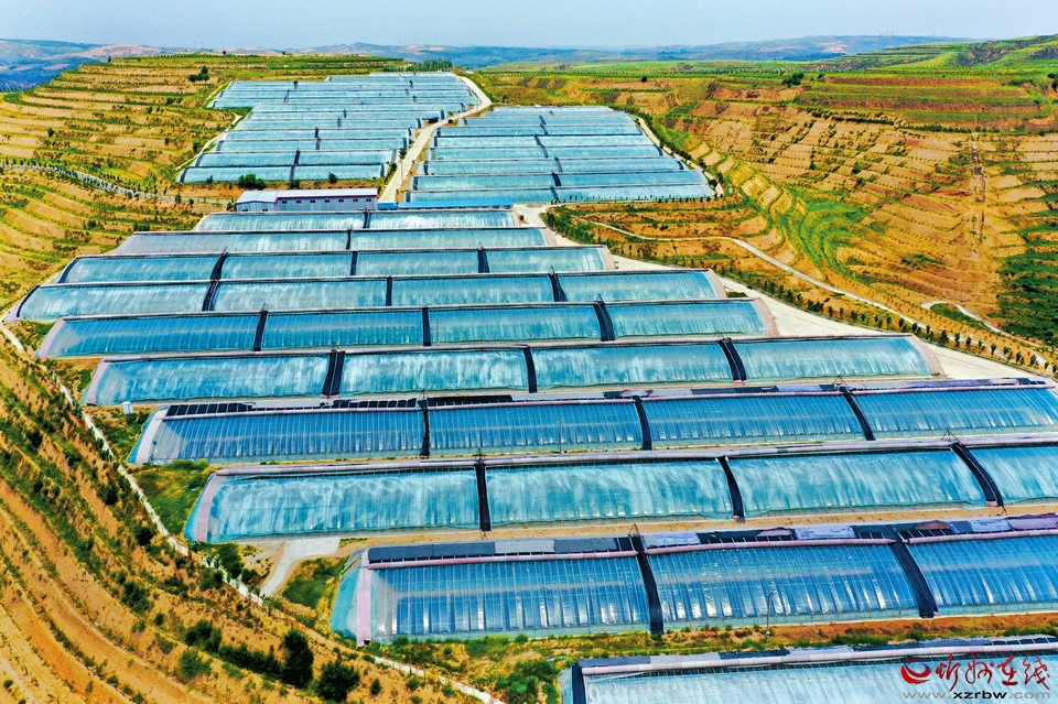 峁梁之間,溝壑縱橫。下了高速,路隨峁轉(zhuǎn),快到榆嶺窊,車窗外的風(fēng)景也變了,密集閃過一排排人造林。上峁放眼,溝梁之間,成片的日光溫室大棚宛如湖泊,在冬日暖陽(yáng)下反射出粼粼波光。大棚之上,這邊一排排白墻灰瓦是別墅群,那邊人才公寓緊挨著老年公寓,飄揚(yáng)著鮮艷國(guó)旗的地方是榆嶺窊村黨群服務(wù)中心。