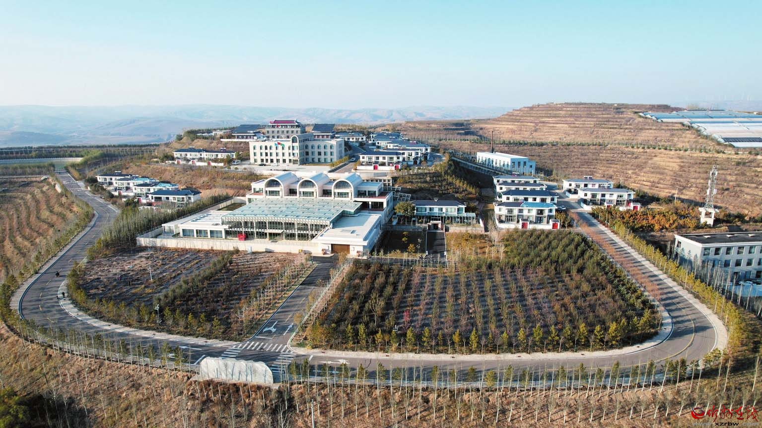 田巨峁村,一個昔日溝深坡陡的小山村,通過大力實施生態(tài)修復(fù)與特色產(chǎn)業(yè)發(fā)展,不僅高標(biāo)準(zhǔn)完成了7.5公里的通道綠化與8000畝的荒山造林,使主色調(diào)由“黃”轉(zhuǎn)“綠”,更在整溝治理后實現(xiàn)了整村搬遷。搬遷后的田巨峁村,依托特色經(jīng)濟林、京津風(fēng)沙源治理等項目,建成3萬千瓦的光伏發(fā)電站、6000頭種豬養(yǎng)殖場以及千畝紅辣椒示范片,如今已是田疇廣布、年豐歲稔的繁榮景象。