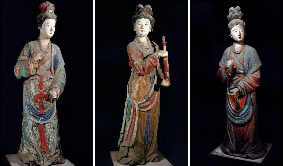 晉祠圣母殿侍女像作于北宋元佑年間,約1082年左右,是晉祠彩塑中最出色的一組人物塑像。伴隨著微弱的光,一尊尊宋代侍女塑像便緩緩走進了紀錄片的鏡頭。