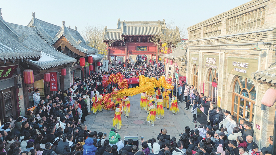 每年的“平遙中國年”都看點(diǎn)十足?!?024平遙中國年”推出了貫穿整個春節(jié)的“龍祥鳳瑞‘迎’新春”“龍躍鳳舞‘鬧’新春”“龍章鳳彩‘賀’新春”三大板塊15項(xiàng)活動。新春祈福、點(diǎn)“靚”古城、非遺社火等民俗活動持續(xù)上演,各地游客沉浸式體驗(yàn)了獨(dú)具平遙地方特色和晉商韻味的民俗民風(fēng)。