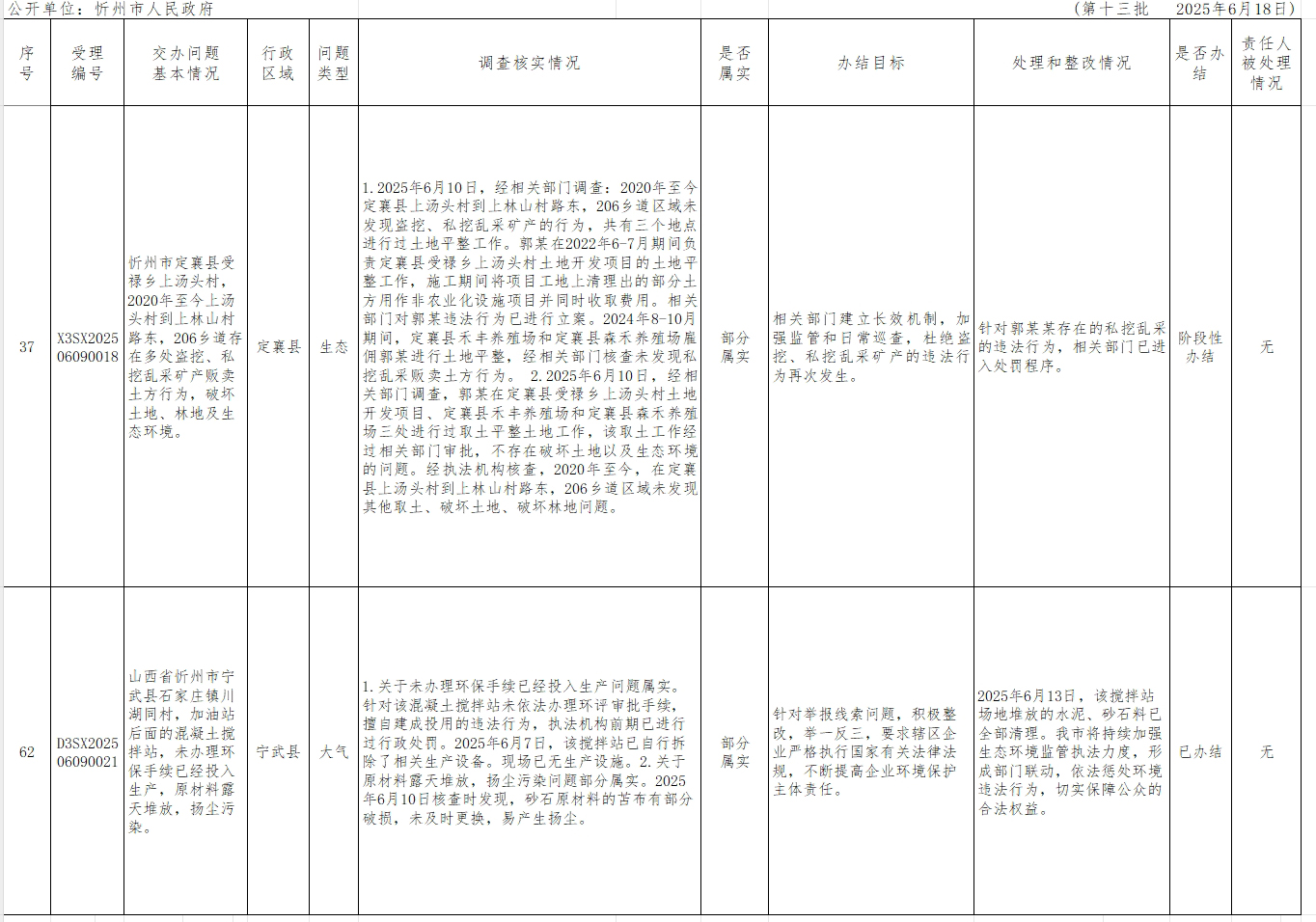 中央生態(tài)環(huán)境保護督察組群眾信訪舉報轉(zhuǎn)辦和邊督邊改公開情況一覽表(第十三批)