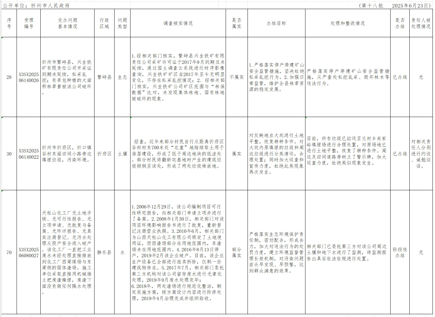 中央生態(tài)環(huán)境保護督察組群眾信訪舉報轉辦和邊督邊改公開情況一覽表(第十八批)