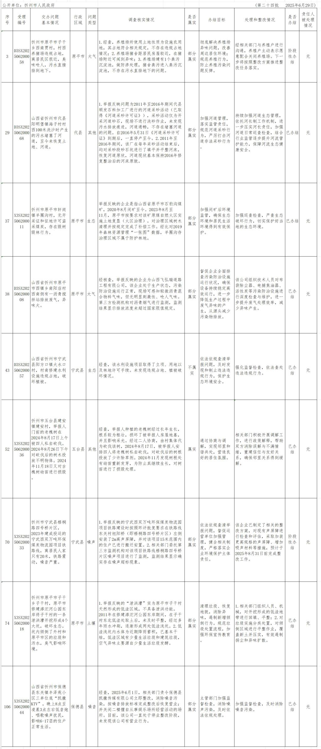 中央生態(tài)環(huán)境保護(hù)督察組群眾信訪舉報(bào)轉(zhuǎn)辦和邊督邊改公開情況一覽表(第二十四批)