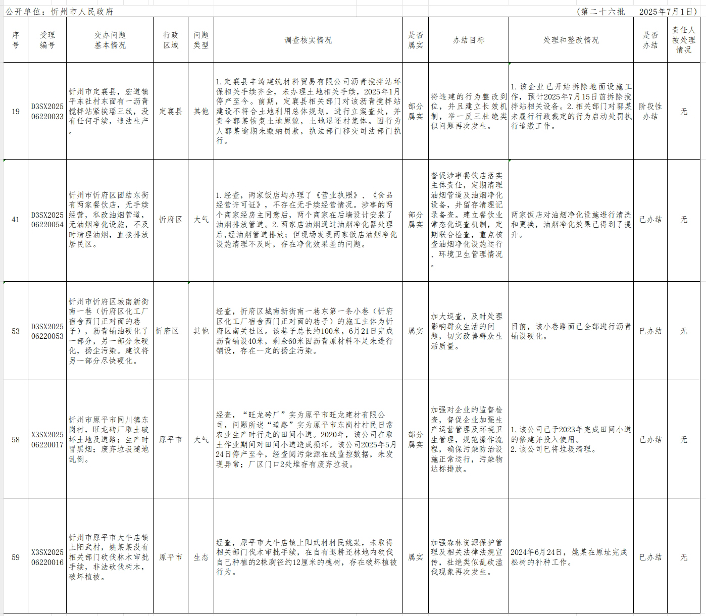 中央生態(tài)環(huán)境保護(hù)督察組群眾信訪舉報轉(zhuǎn)辦和邊督邊改公開情況一覽表(第二十六批)