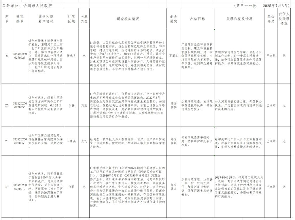 中央生態(tài)環(huán)境保護(hù)督察組群眾信訪舉報轉(zhuǎn)辦和邊督邊改公開情況一覽表(第三十一批)