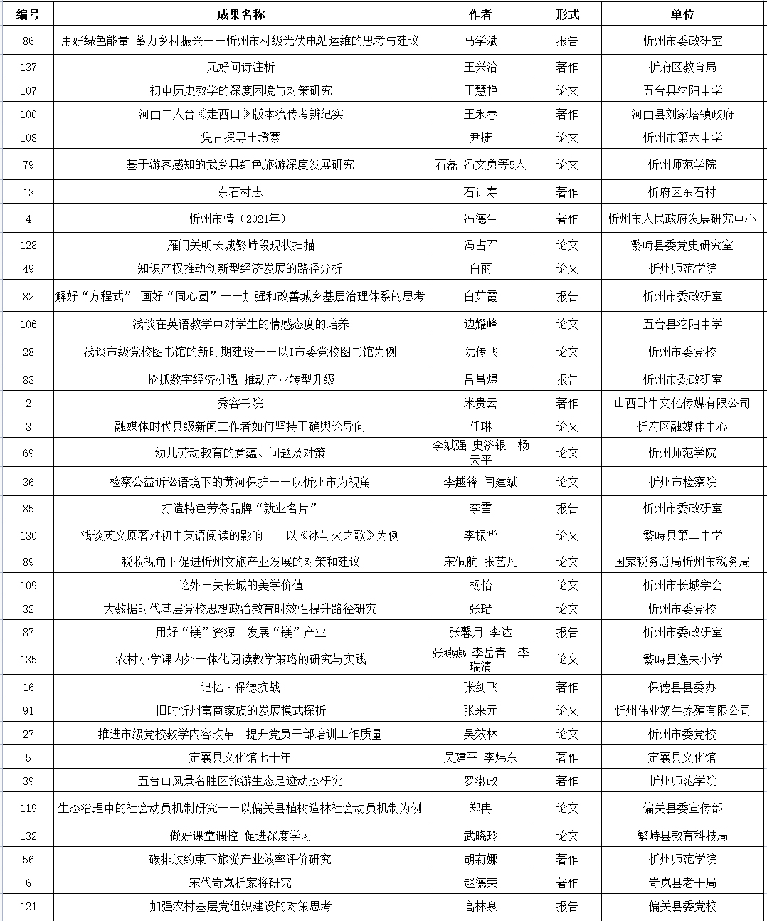 忻州市社會科學(xué)研究優(yōu)秀成果三等獎獲獎名單(共35項)(按姓氏筆畫排序)