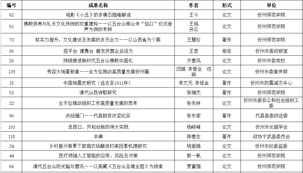 附件:忻州市社會科學(xué)研究優(yōu)秀成果評獎擬獲獎名單