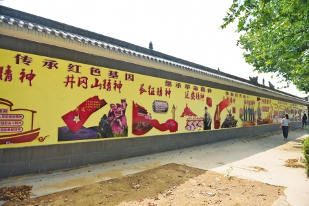 聞喜縣晉華實驗學(xué)校內(nèi)的愛國主義教育文化墻。