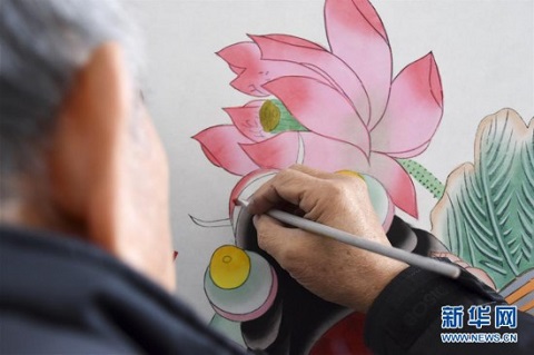 霍慶順在為年畫(huà)上色(1月16日攝)。 新華社記者 宋瑞 攝