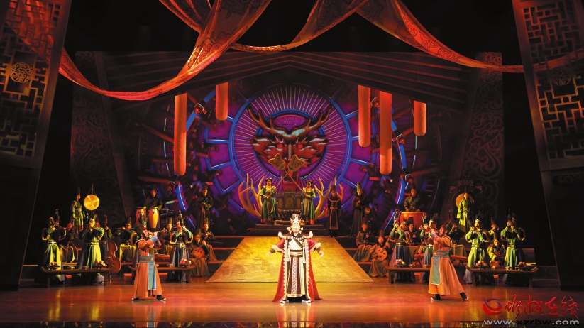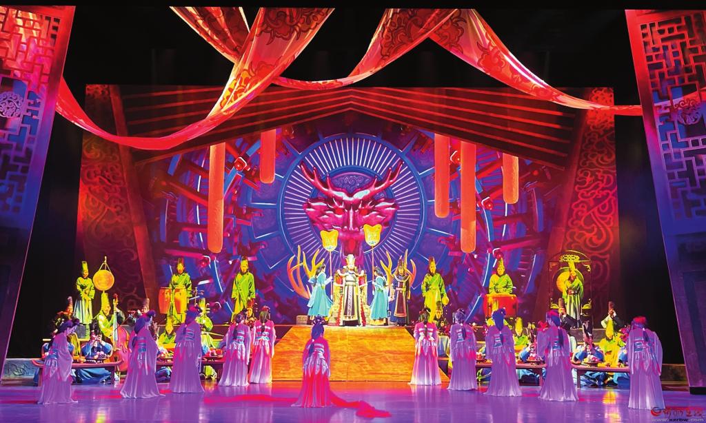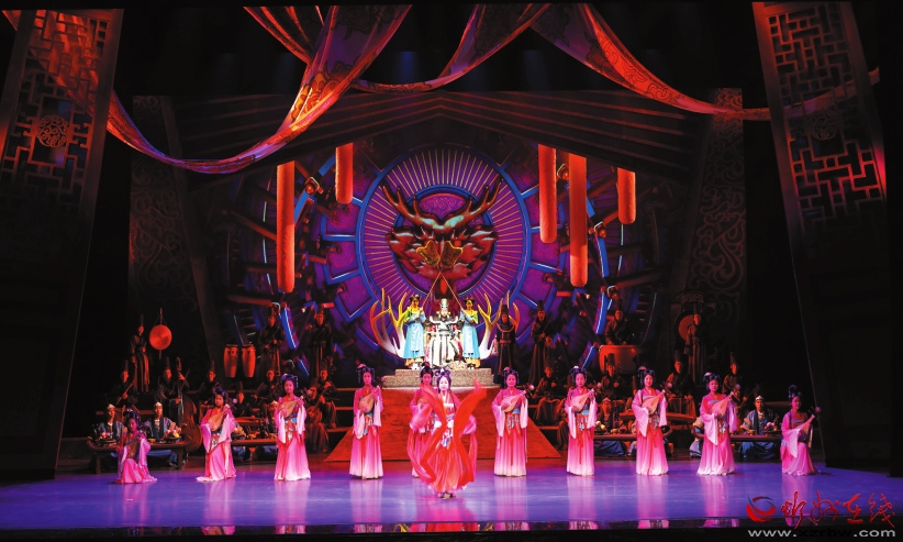 “傳統(tǒng)文化不應(yīng)該只停留在紙面或解說里,可以通過更直觀、更形象的方式,讓藝術(shù)和公眾形成一種互動,滿足公眾對文化可感的期待?!笨倢?dǎo)演劉建斌表示?!朵镌囱彭崱氛且劳幸魳窞檩d體,融合了琵琶、竹笛和笙等中國傳統(tǒng)器樂,以及繁峙秧歌戲、北路梆子、八音會等地方特色文化元素,展現(xiàn)出北魏時期民族音樂在融合中兼收并蓄的多元文化特質(zhì)?!耙魳贰焙汀罢Z言”的雙重表述,通過服裝、燈光、造型及多媒體舞美技術(shù),呈現(xiàn)出令人耳目一新的華美樂章。
