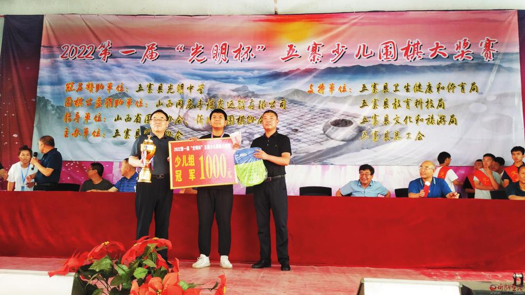 這次大獎賽由五寨縣圍棋協(xié)會主辦,五寨縣光明中學冠名贊助,山西同慶豐煤炭運銷有限公司贊助支持。開幕式上,山西省圍棋協(xié)會向五寨縣圍棋協(xié)會捐贈了價值8500元的智能一體機一臺,忻州市圍棋協(xié)會向五寨縣圍棋協(xié)會頒發(fā)了“立足五寨沃土,培養(yǎng)圍棋人才”的獎牌,并捐贈了價值7200元的高檔圍棋凳40個。山西省圍棋協(xié)會向五寨縣光明中學捐贈國學經典書籍一套,山西人民出版社社長姚軍(圍棋5段)向大賽組委會贈送書法作品一幅。
