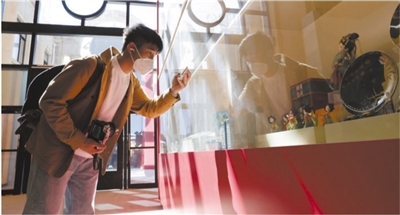 參觀者在“奮進新時代”主題成就展上拍攝非遺作品和文創(chuàng)精品。新華社記者 張玉薇攝