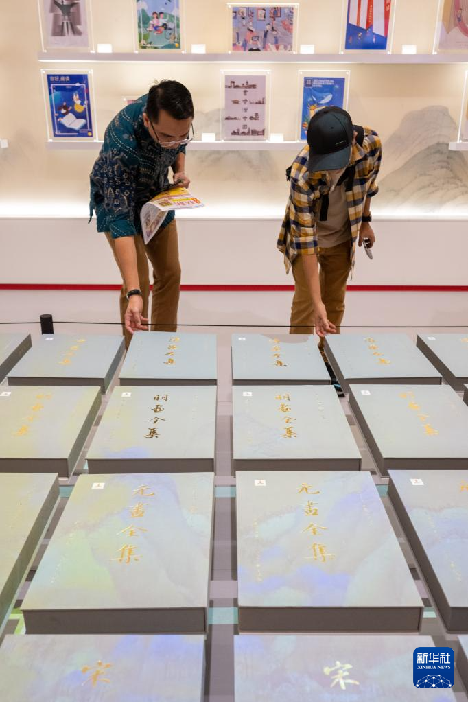 5月26日,觀眾在馬來西亞吉隆坡舉行的第40屆吉隆坡國際書展上觀看“中國歷代繪畫大系”特展展品。新華社記者 朱煒 攝