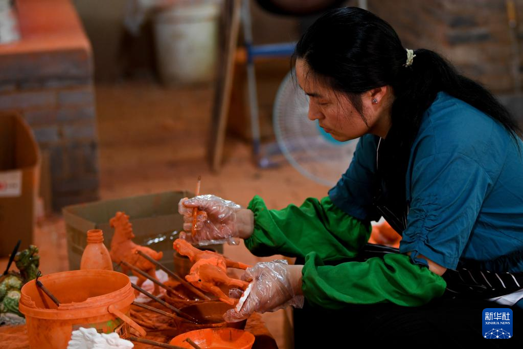 河南省洛陽市朝陽鎮(zhèn)南石山村以生產(chǎn)唐三彩而聞名。近年來,當(dāng)?shù)卣e極引導(dǎo)三彩產(chǎn)業(yè)數(shù)字化建設(shè)工作,推動唐三彩燒制技藝傳習(xí)館、唐三彩陶藝博物館、唐三彩文化研學(xué)所等優(yōu)化升級。目前,南石山村唐三彩產(chǎn)業(yè)的專業(yè)燒制藝人有2000余人、文化企業(yè)68家,年產(chǎn)值達(dá)3.5億元。新華社記者 吳剛 攝