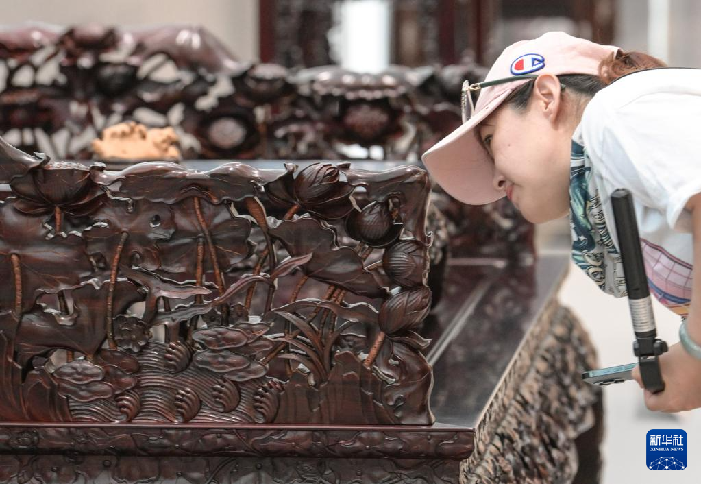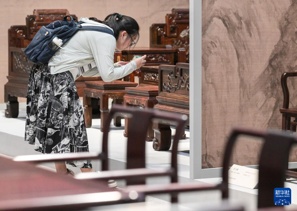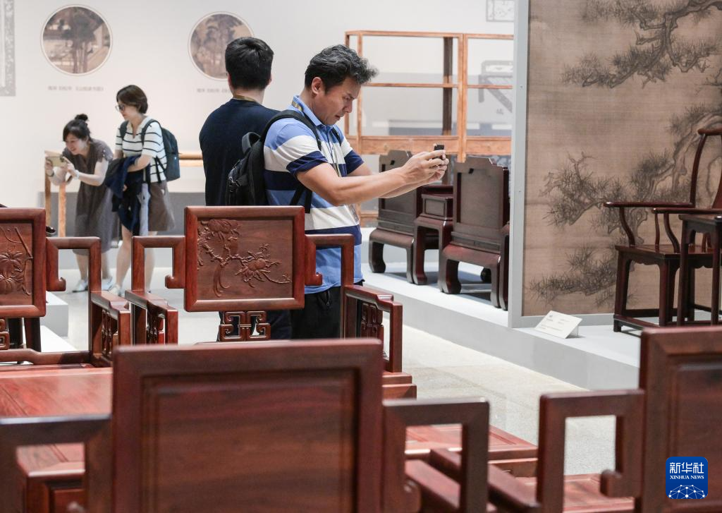 當(dāng)日,“心·傳——陳玉樹新時(shí)代古典家具藝術(shù)展”在位于北京的中國工藝美術(shù)館、中國非物質(zhì)文化遺產(chǎn)館舉辦,展出了高級工藝美術(shù)師陳玉樹近年創(chuàng)作的20套古典家具,展現(xiàn)出中國木作技藝之美。新華社記者 李賀 攝