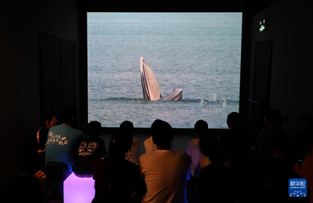 8月26日,游客在國家海洋博物館“鯨奇物語”展區(qū)觀看鯨魚相關(guān)科普視頻。