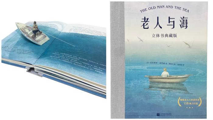 《走近三星堆》是一本極具視覺震撼力的三星堆全景紙藝立體書,它用7個立體跨頁,帶領(lǐng)讀者在探尋中揭開古蜀國的神秘面紗,全面呈現(xiàn)了三星堆的考古發(fā)掘歷程和三星堆文明的大致面貌,還對三星堆遺址第二輪考古發(fā)掘的初步成果做了概要性的介紹,并融入了很多考古小知識,其入選“2022年度中國好書”,并成為首個入選該獎項(xiàng)的立體書?!独先伺c海》是首部以立體書形式呈現(xiàn)的諾貝爾文學(xué)獎作品,全書共有20余個精巧可動的立體紙藝裝置,在不弱化名著原文的基礎(chǔ)上,將立體插畫融入書中,二者相輔相成,既能讓讀者體驗(yàn)到傳統(tǒng)閱讀的樂趣,又能夠沉浸于豐富的立體紙藝場景中。