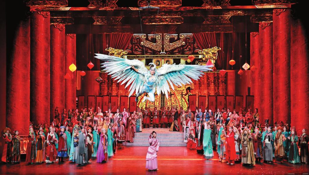 戲劇月的開幕大戲是詩(shī)樂舞大秀《天下歸心》,作品在舞臺(tái)空間上立體展示了濃郁國(guó)風(fēng)特色的時(shí)空布局和視覺風(fēng)格,劇場(chǎng)內(nèi)敦煌飛天式實(shí)景呈現(xiàn),“詩(shī)”有相、“樂”有形、“舞”傳神,再現(xiàn)了雁門關(guān)外的金戈鐵馬,以德化民的泰安繁榮,流傳千年的文景之治……作品通過大漢王朝和匈奴之間在雁門關(guān)地域,從戰(zhàn)爭(zhēng)到盟約、再到通婚的歷史故事,表現(xiàn)出“天下一家”的理念。觀眾身臨其境地享受到了一場(chǎng)不可多得的視聽和精神盛宴。該劇也是忻州大劇院建成以來(lái)首次對(duì)外公開演出。