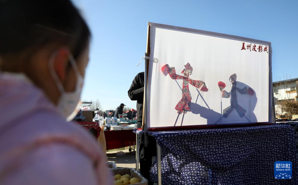 11月28日,一名小朋友在紅旗大集上觀看營(yíng)口蓋州皮影戲。?