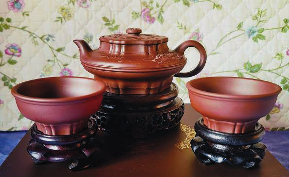 宋代詩人梅堯臣有詩云:“小石冷泉留早味,紫泥新品泛春華?!贝藟卣怯盟暮8G多年收藏的紫砂老泥為原料。值得一提的是,紫泥富含礦物質(zhì)和獨(dú)特的透氣性,讓茶水更加清醇可口。甲辰文龍壺還配了兩只龍杯,上寬下斂,簡約靈動,圈足也以筋紋裝飾,使“寸柄之壺”與“盈握之杯”和諧完美而珠聯(lián)璧合。(王琪森)