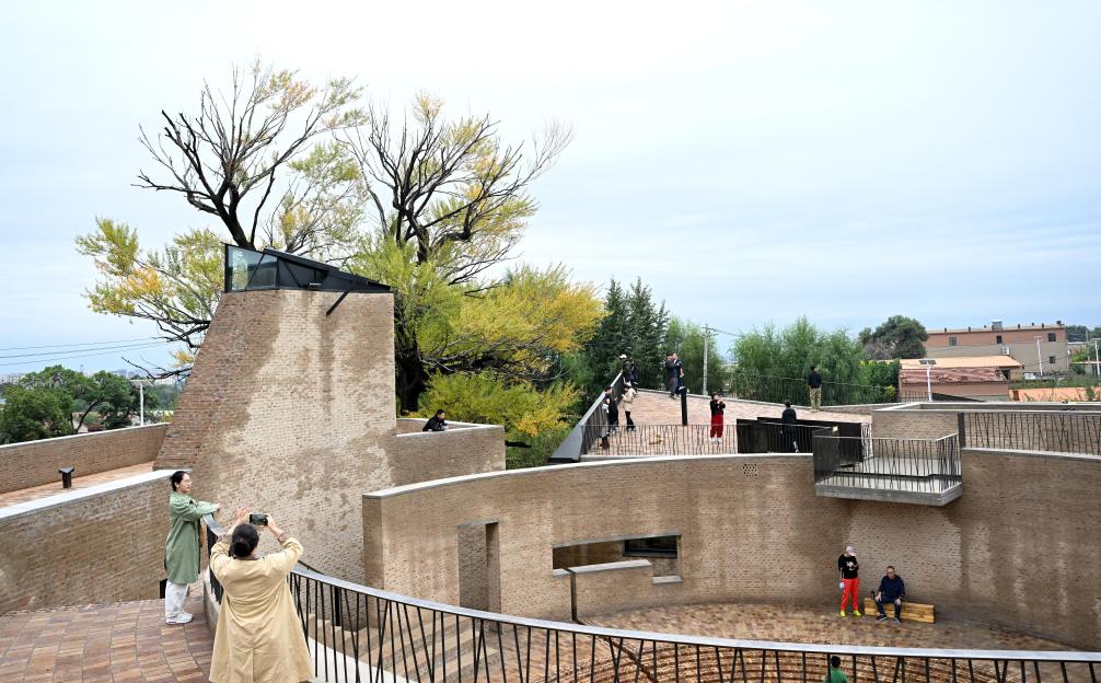 9月16日,市民在內蒙古自治區(qū)呼和浩特市回民區(qū)攸攸板鎮(zhèn)西烏素圖村“回”空間藝術中心參觀游玩。新華社記者貝赫 攝