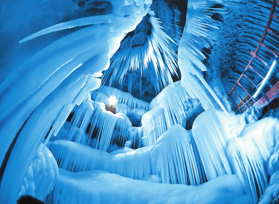 洞窟中,冰柱、冰瀑、冰簾等景觀千姿百態(tài),或玲瓏剔透,或雄偉壯觀,構(gòu)成一個鬼斧神工的冰雪殿堂,2005年,被評為國家地質(zhì)公園。更為神奇的是,與之僅一嶺之隔的“火焰山”卻地熱蒸騰,常年溫熱。這種極端的自然現(xiàn)象在同一山體并存,堪稱地質(zhì)學上的奇跡,吸引著無數(shù)科考人員和游客前來探秘。
