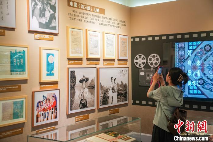 本次展覽上,有近百件劉三姐文化檔案首次亮相。展品中,彩調(diào)劇《劉三姐》劇本第一方案原稿、1960年5月越南胡志明主席在南寧觀看歌劇“劉三姐”后與演員合影照片、1963年6月原中國文化部批復同意向印度尼西亞華僑提供《劉三姐》有關(guān)資料等珍貴檔案資料,吸引參觀者駐足觀看。