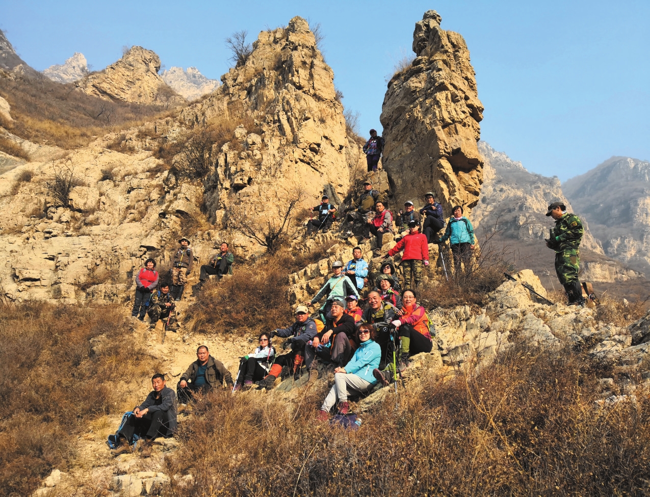 眼看夜幕降臨,隊長要求大家咬緊牙關(guān),加快速度。隊友們相互鼓勵,體能好的照顧稍差的。五名女士表現(xiàn)得異常堅韌,與平時表現(xiàn)大不相同。如果有人掉隊,拉開距離,前面的隊友會高喊一聲網(wǎng)名,溫暖的回聲在空谷中久久回蕩。