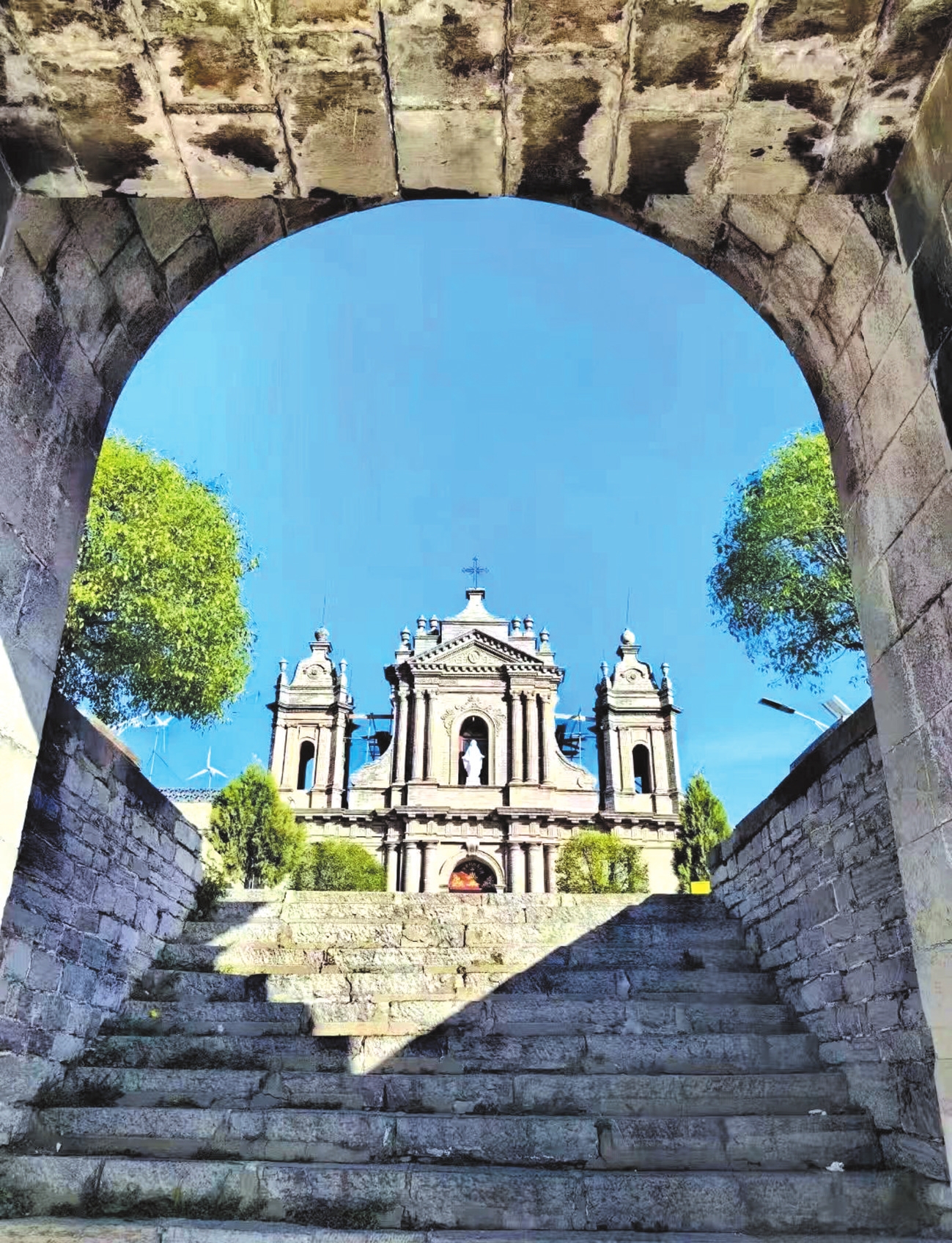 板寺山圣母堂的命運與中國近代歷史緊密相連。20世紀六七十年代,圣母堂所有建筑均遭拆毀,異國風情的城堡式建筑群一度消失于山嶺間。直到1986年,隨著國家宗教政策的落實,太原天主教愛國會才重新修建了圣母堂。重建工程不僅恢復(fù)了圣母堂主體建筑,還在山路上修建了十四處苦路碑樓。這些白色哥特式建筑沿著朝圣之路依次排列,構(gòu)成了一幅新的景觀。