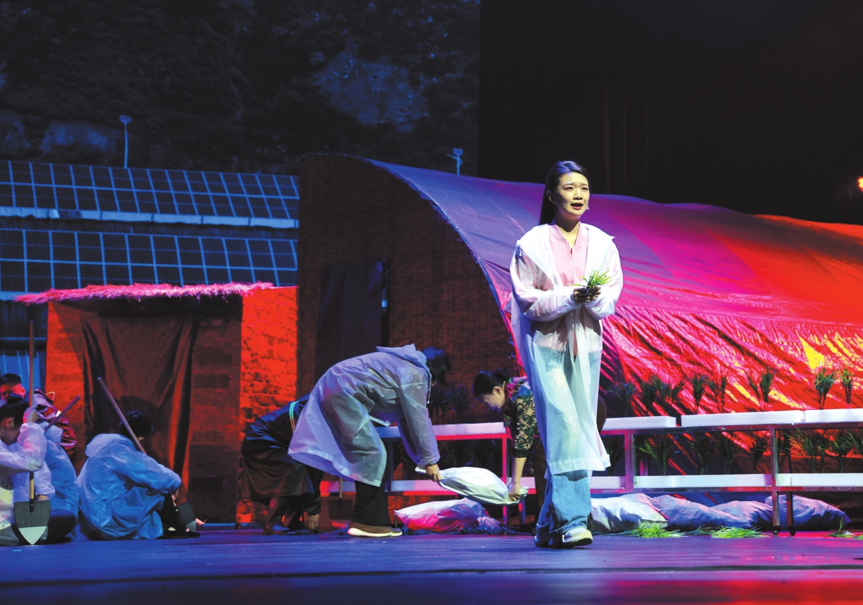話劇這種藝術樣式,要抵達一個成熟的高度,不容易,需要十分強烈的藝術表現(xiàn)力和高度的矛盾沖突呈現(xiàn)。能不能讓觀眾看的時候動容,看完還能留下印象,就有了施展拳腳的余地。把人物置于矛盾的漩渦,才能突出人物形象。這個適用于小說創(chuàng)作,同樣適用于劇本塑造。只有在矛盾的漩渦中,人物才能成長,觀眾才能買賬。這一點,《三棵樹下》做得可圈可點。無論是一開始大雨對蔬菜大棚的極大毀壞,還是曹民財不折不撓的堅持“退股”,甚至是城里男友的不理解、提出分手,都是加劇矛盾、讓農(nóng)學專業(yè)畢業(yè)的女大學生李小雨這個人物形象更加豐滿圓熟的重要手段。