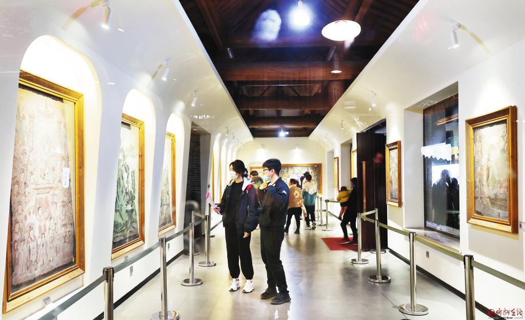 游客在五臺山修淵島壁畫藝術館參觀 張存良 攝