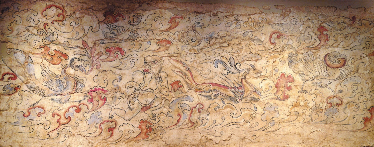 忻州北朝墓葬壁畫中《升天圖》局部 北朝墓群是忻州市文物保護(hù)單位,現(xiàn)存地表的高大封土堆有5個(gè),封土堆底徑40——50米,高度5——8米。此次發(fā)掘的壁畫墓位于忻府區(qū)蘭村鄉(xiāng)下社村東北約600米處。 尋找封土的秘密 2013年春,山西大學(xué)歷史文化學(xué)院一名考古專業(yè)的學(xué)生在忻州開展調(diào)查研究,發(fā)現(xiàn)一處平整寬闊的土地上有一個(gè)高大土堆,懷疑這是一座北朝大墓的封土堆,隨后便向考古部門報(bào)告了此事。不久,當(dāng)時(shí)的山西省考古研究所派人趕赴忻州,與忻州市文物管理部門工作人員合力進(jìn)行調(diào)查。經(jīng)過詳細(xì)考察,確定此處是一座規(guī)格較高的大墓,墓室內(nèi)墻上還有壁畫。 為加強(qiáng)對(duì)忻州北朝墓葬壁畫的保護(hù),山西省考古研究院、山西博物院聯(lián)合忻州文物部門對(duì)墓葬進(jìn)行搶救性發(fā)掘,共清理壁畫約200平方米,不僅首次發(fā)現(xiàn)同時(shí)期墓葬中的木結(jié)構(gòu)建筑壁畫,還發(fā)現(xiàn)了目前國內(nèi)發(fā)現(xiàn)面積最大的北朝墓葬狩獵圖。 揭開古墓的面紗 制定了完善的發(fā)掘和保護(hù)計(jì)劃后,考古隊(duì)正式開始發(fā)掘。工作人員在探方內(nèi)發(fā)現(xiàn)了白灰線,經(jīng)過仔細(xì)清理平面,墓道邊線清晰呈現(xiàn),墓道長(zhǎng)約31米,寬約3.5米。接著就是墓道的發(fā)掘工作,在對(duì)墓道小面積的解剖過程中,發(fā)現(xiàn)墓道的建法很特殊——是一條很寬的墓道,兩側(cè)各砌起一道土坯墻,墻上涂抹著一層摻有麥秸的黃泥,黃泥表面加抹了一層白灰,形成地仗層。工作人員在小面積的解剖過程中,非常注意對(duì)壁畫的保護(hù),因此在靠近墓壁的地方仍保留了10——15厘米的填土,準(zhǔn)備發(fā)掘到一定程度后再清理。 甬道位于墓道與墓室之間,平面呈長(zhǎng)方形,長(zhǎng)3米,寬1.95米,高3.2米,拱形券頂。甬道南端原有石門,現(xiàn)僅殘存石質(zhì)門楣和門額。門額上方砌一堵門墻,口寬2.5——3.37米,高6.47米,用以繪制壁畫。墓門上方還有一道墓門墻,極為罕見。沿甬道往北是墓室,墓室砌筑于方形土壙?jī)?nèi),平面為方形,東西長(zhǎng)5.9米,南北寬5.75米,高約8.4米,穹窿頂,四壁厚0.45米。四面墻壁原均有壁畫,現(xiàn)僅余頂部星象圖保存較好。 經(jīng)過考古隊(duì)反復(fù)討論,最后決定在墓道上方搭建鋼結(jié)構(gòu)彩鋼大棚,并安裝監(jiān)控、警燈,派專人負(fù)責(zé)工地保衛(wèi)。目的一是為了保護(hù)墓葬,減少人員進(jìn)出;二是保護(hù)壁畫,減少陽光、空氣、水對(duì)壁畫的破壞;三是可以減少雨季對(duì)墓葬的影響,同時(shí)便于發(fā)掘保護(hù)。2013年10月,墓道發(fā)掘工作大面積展開,經(jīng)過半個(gè)多月,發(fā)現(xiàn)墓道西壁出現(xiàn)面積較大的輕微霉斑,采取物理清理后基本穩(wěn)定。 隨著發(fā)掘深入,氣候慢慢轉(zhuǎn)冷,為了保護(hù)壁畫,考古隊(duì)給墓群修筑了取暖設(shè)施。在大棚外壘砌地爐,讓暖氣經(jīng)過工作棚內(nèi)東西兩側(cè),使墓道內(nèi)溫度基本保持在10℃左右。這樣做的好處首先是墓道壁畫不會(huì)經(jīng)歷因溫度大幅變化導(dǎo)致的壁面干裂脫落,其次壁畫顏色還可以保持鮮艷的本色,不至于脫色掉皮,同時(shí)也給清理工作帶來便利。 重現(xiàn)壁畫的精彩 為將珍貴的文化遺產(chǎn)保護(hù)好,有關(guān)部門邀請(qǐng)了國內(nèi)壁畫保護(hù)領(lǐng)域的專家舉行座談會(huì)。經(jīng)過現(xiàn)狀調(diào)查、科學(xué)分析及試驗(yàn)性修復(fù),嚴(yán)格遵循國家文物保護(hù)法規(guī),設(shè)計(jì)了一個(gè)壁畫揭取保護(hù)方案。由于草木根系布滿整個(gè)畫面,造成白灰層地仗與麥秸泥地仗的疏松甚至分離,所以在壁畫保護(hù)過程中,需要最大限度剪除草木根系,恢復(fù)白灰層的穩(wěn)定。白灰層地仗表面附著的污塵,一經(jīng)鈣化就會(huì)給清理工作帶來較大困難,經(jīng)過反復(fù)實(shí)驗(yàn),工作人員決定用竹簽從各個(gè)方向反復(fù)剔除的方法對(duì)其進(jìn)行清理。針對(duì)白灰層地仗錯(cuò)位疊壓引起白灰層與麥秸泥地仗分離的情況,工作人員采取直接在疊壓邊緣加固的方法。 此次發(fā)掘以壁畫保護(hù)為主。上層壁畫粉碎情況嚴(yán)重,保護(hù)組對(duì)壁畫碎塊一一加固,對(duì)壁畫顏料進(jìn)行封護(hù),并對(duì)壁畫表面病害做了記錄與分析,同時(shí)使用干濕度測(cè)試儀對(duì)壁面的不同顏料、不同區(qū)域進(jìn)行跟蹤監(jiān)測(cè)。發(fā)掘進(jìn)度雖然緩慢,但是發(fā)掘出的壁畫均得到了有效保護(hù)。通過與浙江大學(xué)文化遺產(chǎn)研究院、山西晉之源文化藝術(shù)公司兩家機(jī)構(gòu)合作,每發(fā)掘一層壁畫,便使用儀器及時(shí)掃描,將壁畫內(nèi)容、顏色等信息盡可能完整保存下來。彩色打印出圖后,經(jīng)過比較,專家組對(duì)掃描效果非常滿意,認(rèn)為比傳統(tǒng)的壁畫臨摹效果好、時(shí)間短、花費(fèi)低、易保存。 探究古人的世界 山西發(fā)現(xiàn)的大型北朝壁畫墓很多,被人們熟知且規(guī)格較高的有婁睿墓、徐顯秀墓等。從壁畫內(nèi)容及規(guī)模來看,忻州北朝墓壁畫都比同時(shí)期墓群的內(nèi)容更加豐富。駐足墓道南端,目光向北直達(dá)墓室,看到面積約240平方