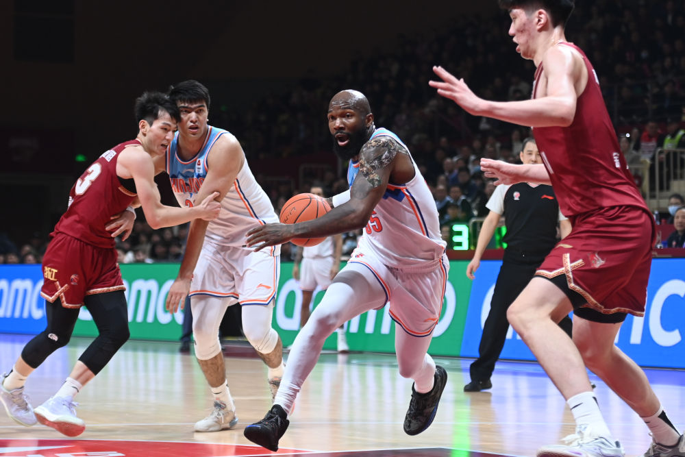 1月15日,新疆隊球員瓊斯(中)在比賽中進攻。新華社記者 黃宗治 攝