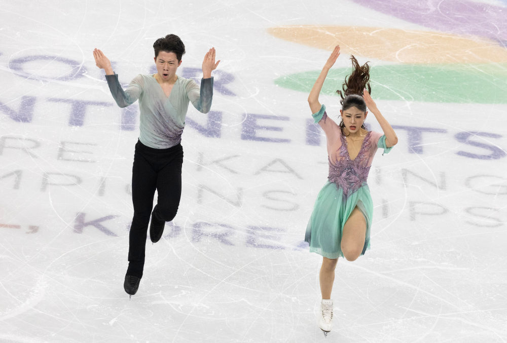 雙人滑項目,日本組合三浦璃來/木原龍一奪冠,加拿大傳奇女運動員斯特拉托-杜迪克與搭檔德尚獲得銀牌,同樣來自加拿大的佩雷拉/米肖獲得銅牌。