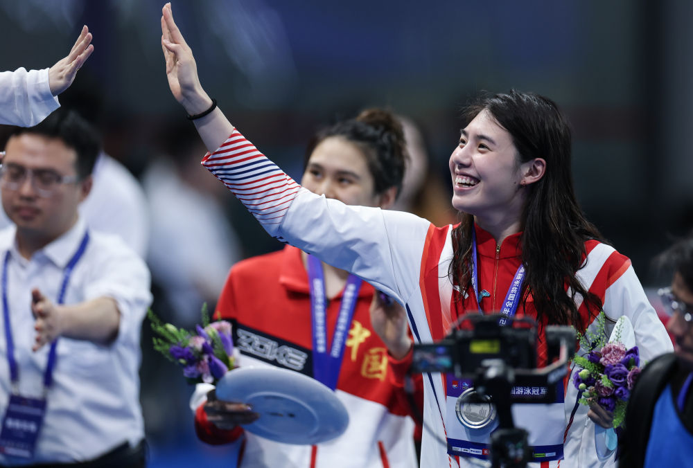 5月18日,張雨霏在頒獎(jiǎng)儀式后。新華社記者 毛思倩 攝