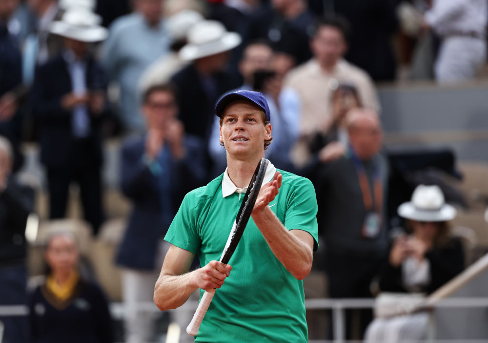 6月4日,辛納在比賽后慶祝。新華社記者 李京 攝