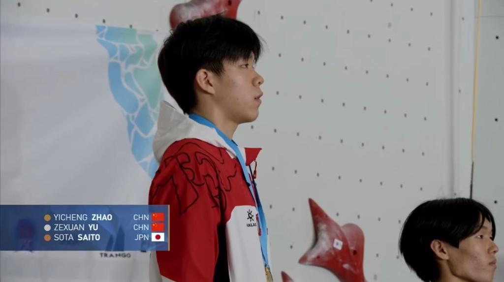 最后一天的速度賽中,中國(guó)隊(duì)連奪兩金。曾在國(guó)內(nèi)選拔賽中取得4秒65佳績(jī)的小將趙一程以4秒85的表現(xiàn)奪得U17組男子速度冠軍,虞澤軒獲亞軍。U17組女子方面,唐佳歆在決賽中爬出6秒99,以0.03秒的微弱劣勢(shì)摘得銀牌,王春優(yōu)璇、李瀟飛分列三、四名。