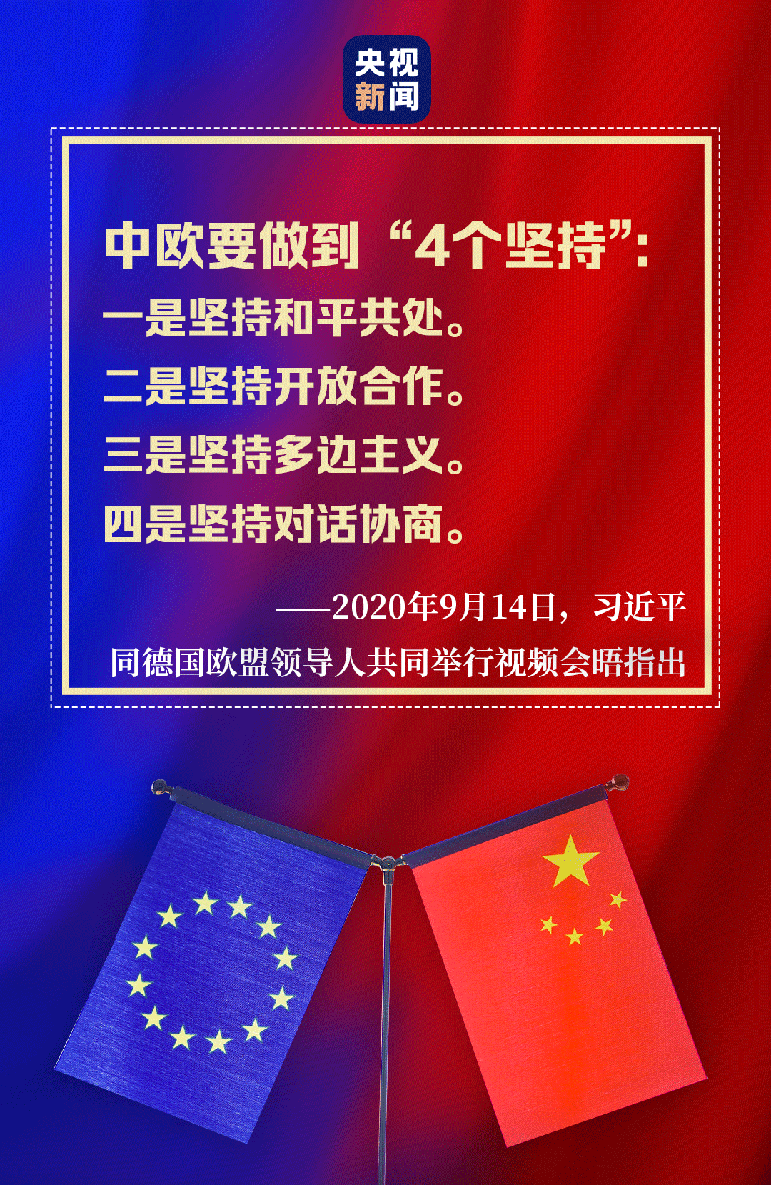 “后疫情時(shí)代”中歐關(guān)系如何發(fā)展,習(xí)近平主席的“4個(gè)堅(jiān)持”向世界表明了中國立場、中國態(tài)度。