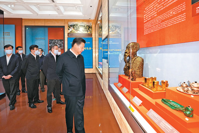 7月16日,中共中央總書記、國家主席、中央軍委主席習近平在中央禮品文物管理中心參觀“友好往來 命運與共——黨和國家領(lǐng)導人外交活動禮品展”。新華社記者 李學仁 攝