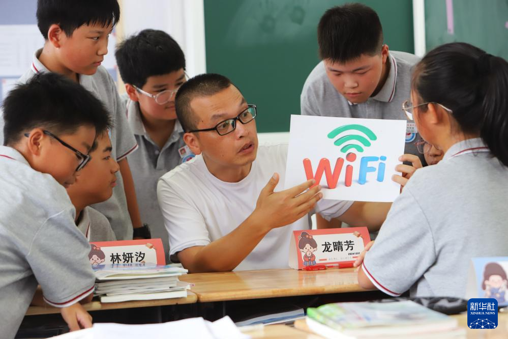9月11日,浙江省臺州市路橋區(qū)蓬街中學老師為學生講解網(wǎng)絡安全知識。(新華社發(fā) 蔣友青 攝)