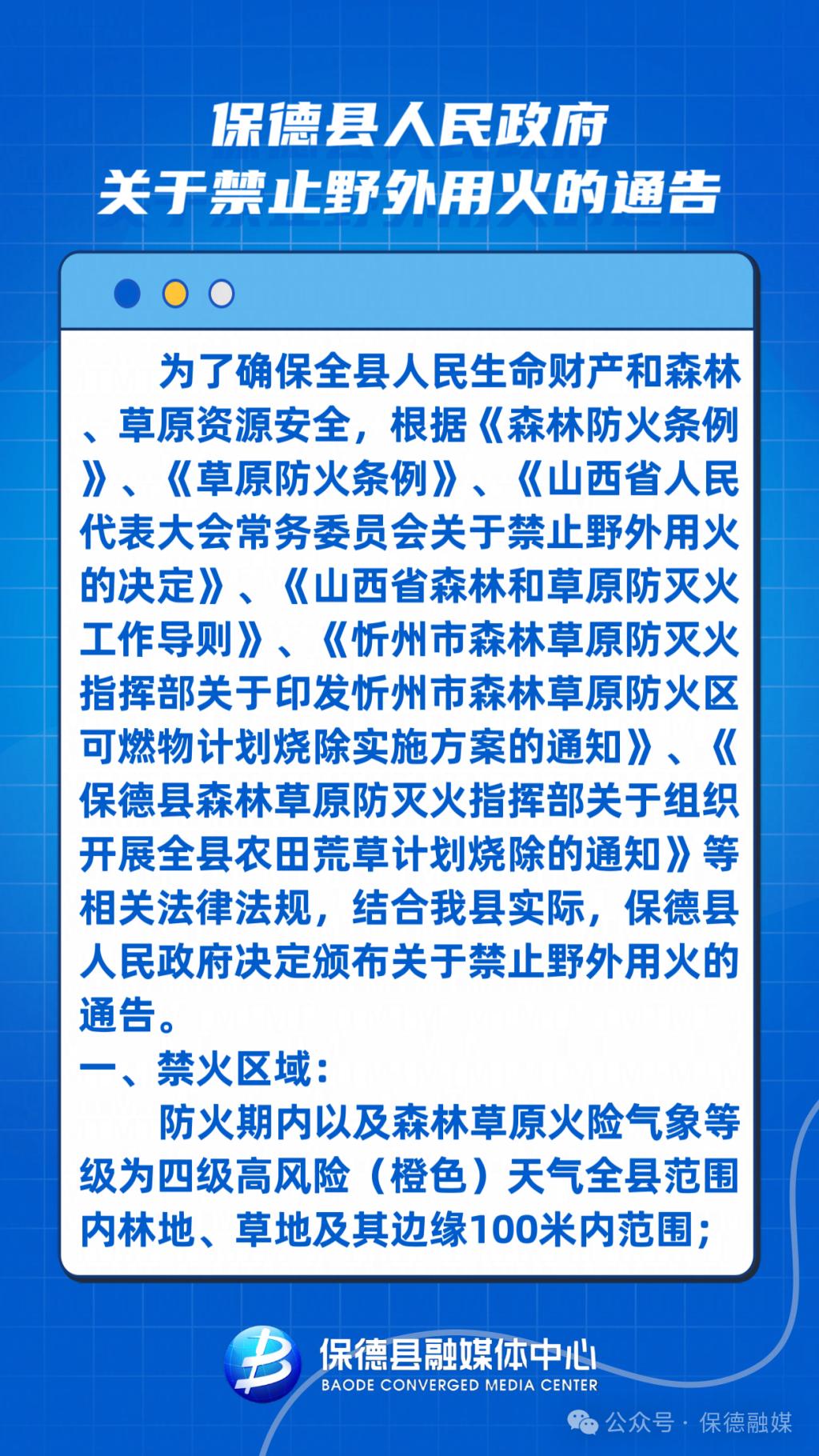 保德縣人民政府關于禁止野外用火的通告
