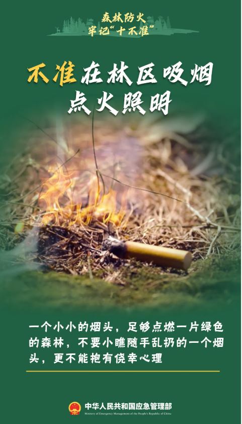 一次疏忽, 能使萬畝綠色焚為灰燼一次大意, 能使森林瞬間化為烏有一個(gè)煙頭, 能打破生態(tài)的自然平衡......立冬后已進(jìn)入干季高度重視森林草原防滅火工作刻不容緩引起森林草原火災(zāi)的原因有哪些?遭遇森林草原火災(zāi)該怎么辦?森林草原防火知識(shí)快來一起學(xué)習(xí)吧↓↓↓科普