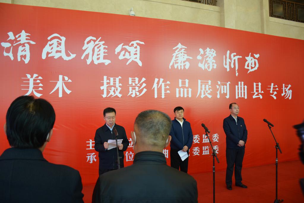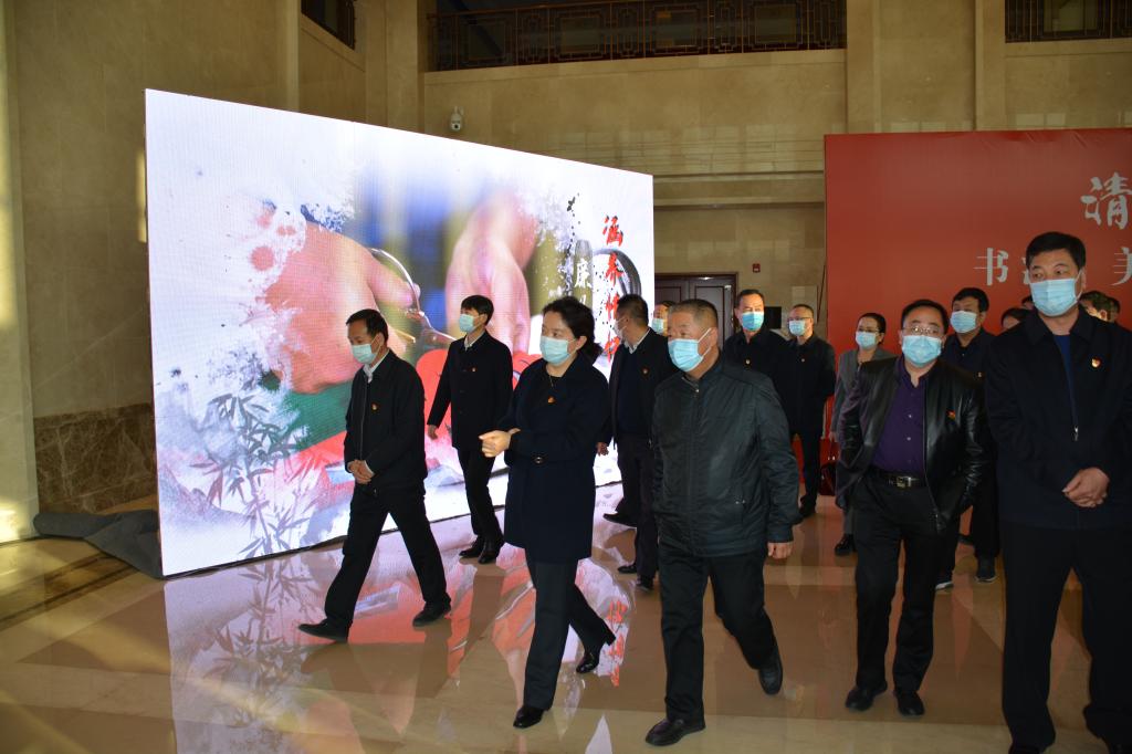 翰墨丹青揚(yáng)正氣,清風(fēng)廉韻沁民心。11月10日,由忻州市紀(jì)委監(jiān)委主辦,河曲縣紀(jì)委監(jiān)委承辦的“清風(fēng)雅頌·廉潔忻州”書畫美術(shù)攝影展河曲縣專場,在臨隩公園美術(shù)館開展。市政協(xié)副主席、縣委書記邊東圣出席儀式并作重要講話,縣委副書記、縣長任鴻賓宣布“清風(fēng)雅頌·廉潔忻州”書法美術(shù)攝影展開展,縣委常委、縣紀(jì)委書記、縣監(jiān)委主任張永明主持開展儀式??h四大班子領(lǐng)導(dǎo)和其他縣處級領(lǐng)導(dǎo),全縣各鄉(xiāng)鎮(zhèn)、居民辦、黨群、政府、發(fā)改、農(nóng)口、政法、宣傳文衛(wèi)各口黨員干部及全體紀(jì)檢監(jiān)察干部共計(jì)180余人參加了開展儀式。