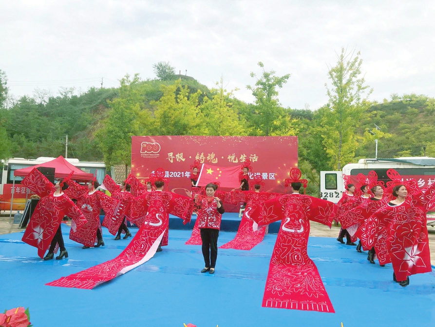 國慶假期,“尋根·鑄魂·悅生活”暨永和縣“歡度國慶、暢游乾坤”主題文旅活動在黃河蛇曲國家地質(zhì)公園舉辦。當(dāng)?shù)胤沁z傳承人劉林翠帶來的剪紙秀《五星紅旗》用別樣的方式贊美祖國,表達(dá)對社會主義和諧富裕新生活的熱愛。張婷 王偉攝