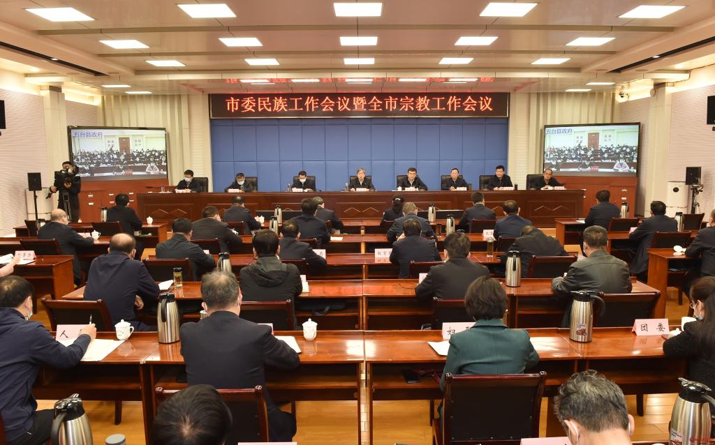 3月21日,市委民族工作會(huì)議暨全市宗教工作會(huì)議召開。市委書記朱曉東出席并講話,市委副書記、市長(zhǎng)李建國(guó)主持。市委副書記、政法委書記郭奔勝,市人大常委會(huì)主任王珍,市領(lǐng)導(dǎo)劉卓良、溫建軍、張敏、張宇光等出席。市委統(tǒng)戰(zhàn)工作領(lǐng)導(dǎo)小組及市宗教工作領(lǐng)導(dǎo)小組成員單位負(fù)責(zé)人,市人大常委會(huì)民僑工委、市政協(xié)民宗委負(fù)責(zé)同志參加。會(huì)議以視頻形式開到縣級(jí)。