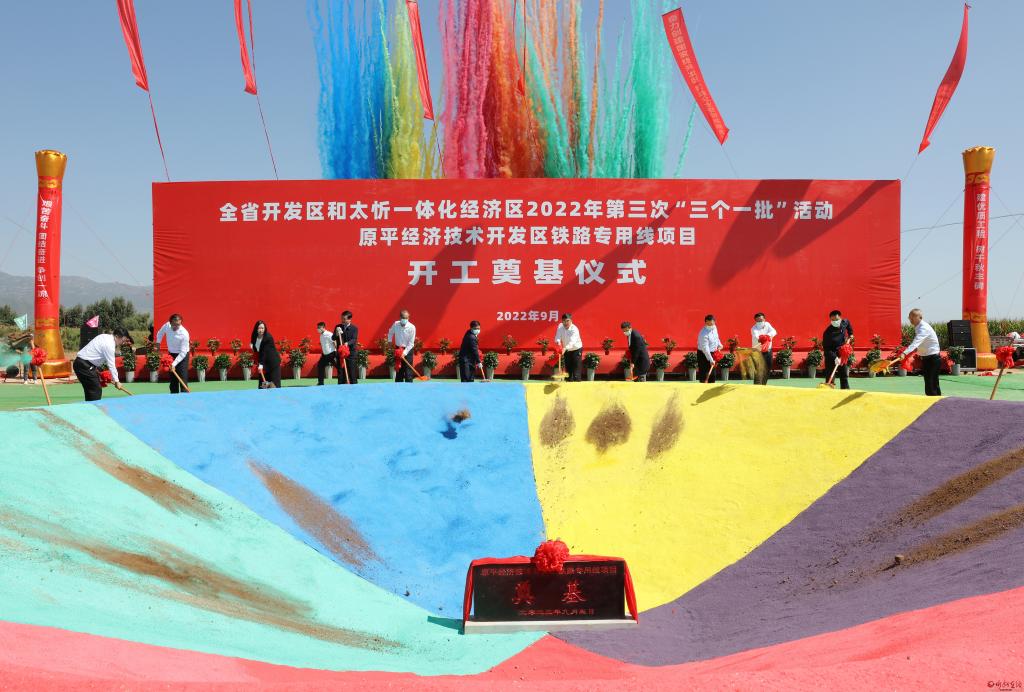奠基儀式。范濤 攝 9月5日,全省開發(fā)區(qū)2022年第三次“三個一批”活動暨太忻一體化經濟區(qū)建設推進會舉行,我市在原平經濟技術開發(fā)區(qū)設立分會場,與全省同步舉行相關活動。市委副書記、市長李建國匯報我市此次“三個一批”項目和太忻一體化經濟區(qū)忻州片區(qū)建設推進情況。省委常態(tài)化督導一組副組長郭海斌,市領導張文偉、溫建軍、張宇光、羅志宏,市政府秘書長張艮生,市直相關部門、8個省級開發(fā)區(qū)管委會、太忻一體化經濟區(qū)忻州區(qū)負責人和簽約項目代表等在忻州分會場出席活動。
