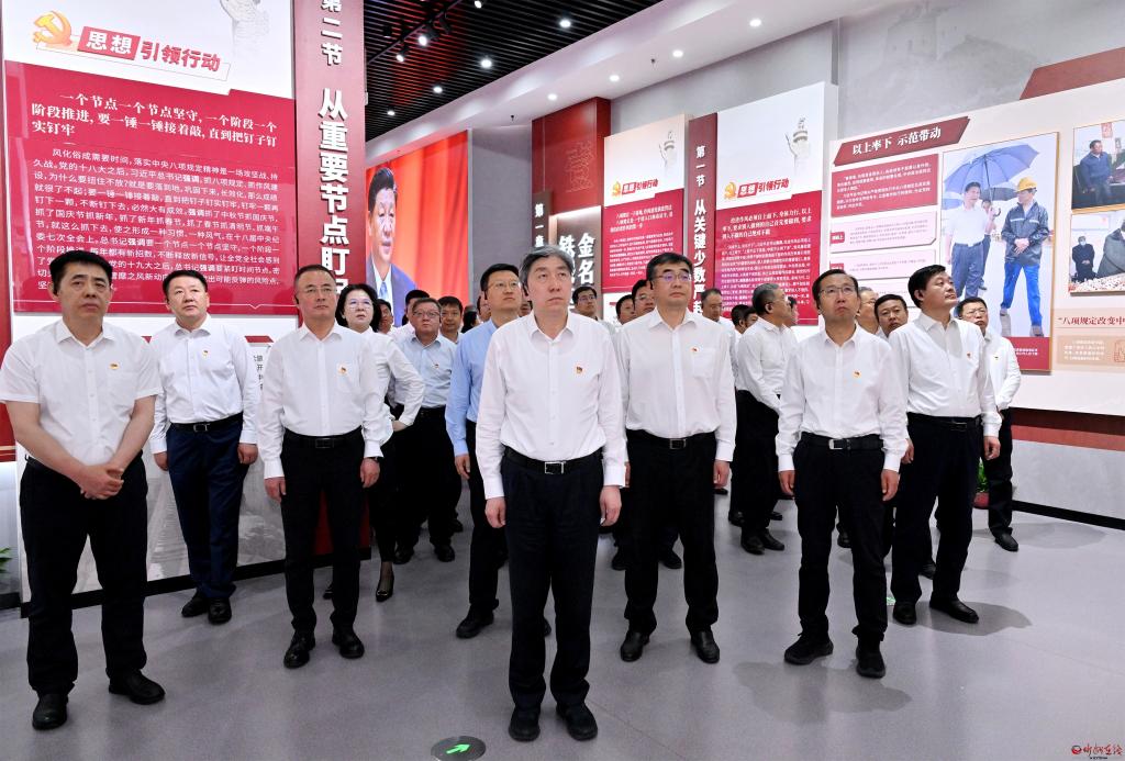 在警示教育館,朱曉東與大家沿“鐵規(guī)矩、金名片”“糾四風(fēng)、治頑疾”“好作風(fēng)、新征程”等展區(qū)認(rèn)真參觀,仔細(xì)聽取講解,通過一幅幅圖片、一個(gè)個(gè)案例、一份份懺悔錄,深刻感受到省委持續(xù)加固中央八項(xiàng)規(guī)定堤壩、鍥而不舍糾“四風(fēng)”樹新風(fēng)、以釘釘子精神打好作風(fēng)建設(shè)攻堅(jiān)戰(zhàn)持久戰(zhàn)的堅(jiān)定決心。