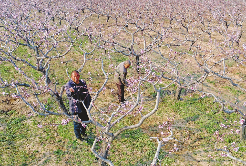 3月30日,在臨汾市襄汾縣大鄧鄉(xiāng)上西梁村,果農(nóng)在桃園開展春管作業(yè)。日前,上西梁村上百畝桃樹進(jìn)入盛花期,當(dāng)?shù)剞r(nóng)民搶抓農(nóng)時對桃園開展追肥、灌溉、疏花等系列農(nóng)事活動,確保果樹正常生長、果實(shí)優(yōu)質(zhì)高產(chǎn)。李現(xiàn)俊攝